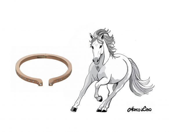 Das Hufeisen von Marco Lino verwandelt ein schlichtes Hufeisen in ein faszinierendes Schmuckstück und symbolisches Zeichen des Glücks. Mit einer mutigen Idee und kompromisslosen Details gestaltet, passt sich dieses meisterhaft proportionierte Accessoire durch seine geschwungene Form perfekt dem Handgelenk an.