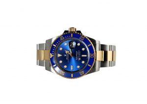 Luxuriöse Rolex Submariner in Rolesor – Stahl – Gold mit blauem Sonnenschliff-Zifferblatt. Jahrgang 2021, Full Set mit Box und Papieren. Kaliber 3235, 41 mm Durchmesser, Automatik. Zustand: Sehr gut.
